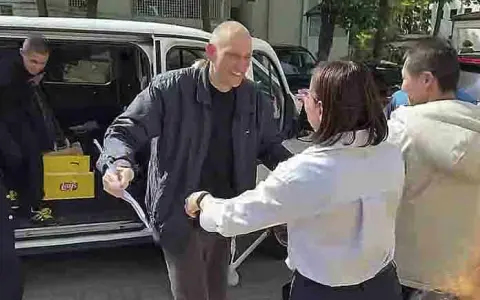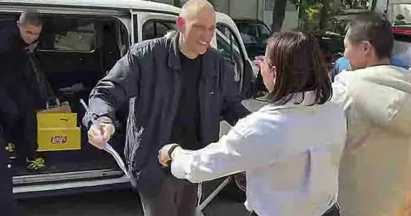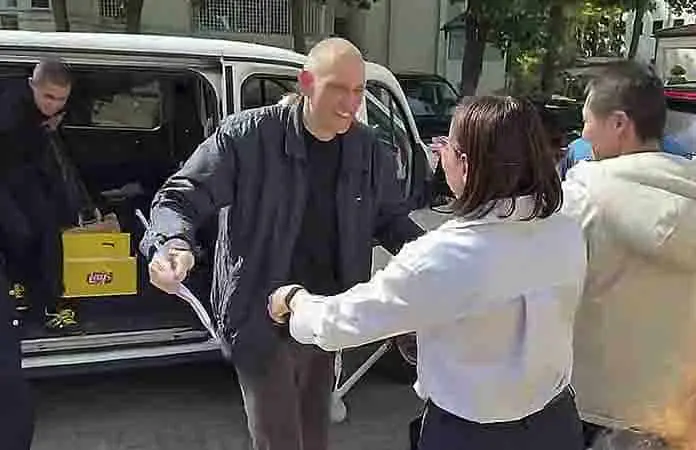 En un video publicado en Telegram de Tsikhanouskaya, Tsikhanouski aparece bajando de un minibús blanco, con una amplia sonrisa, a pesar de aparecer con su cabeza rapada y su figura demacrada. Dio a su pareja un largo abrazo al tiempo que sus partidarios aplaudían.