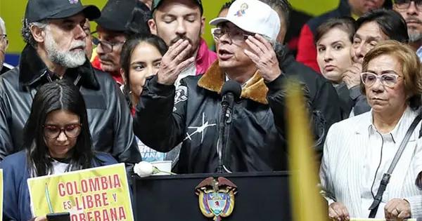 La llamada ocurrió poco antes de una marcha multitudinaria convocada por el presidente colombiano para la defensa de la soberanía nacional y en la que Gustvo Petro admitió que debía cambiar el "duro discurso" que había preparado.