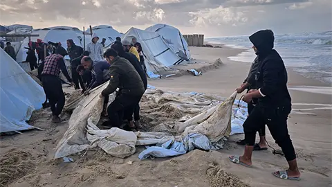"Se encharcó y había un mal olor", dijo Majdoleen Tarabein, quien fue desplazada de Rafah, en el sur de Gaza. "La tienda voló. No sabemos qué hacer ni a dónde ir".