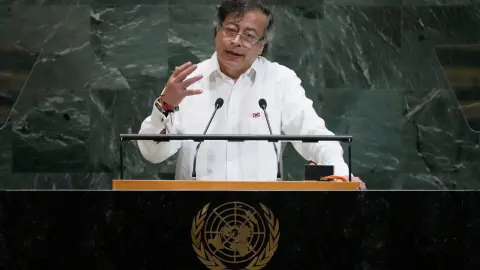 Petro, quien propuso en Nueva York crear un ejército internacional para defender al pueblo palestino, pidió a los soldados "no apuntar contra la humanidad sus fusiles. Desobedezcan la orden de Trump".