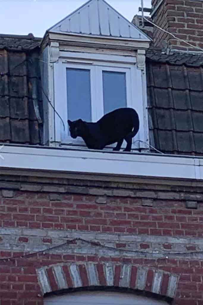 Las fotografías en redes sociales no se hicieron esperar, incluso los servicios de emergencia subieron algunas en las que se ve a la “pantera negra paseando en silencio por el borde del techo, en el tercer y último piso del edificio de ladrillos, inclinándose hacia el vacío o mirando por la ventana de un apartamento”.