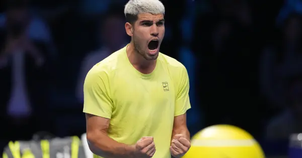 El tenista español Carlos Alcaraz se corona como el mejor del año en las Finales de la ATP al vencer a Musetti en un emocionante partido.