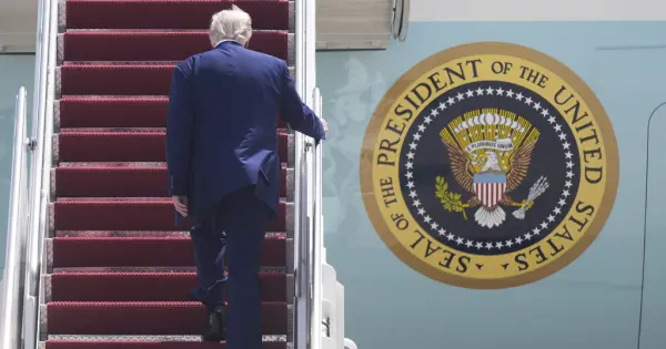 No hubo reporteros de The Associated Press, Bloomberg o Reuters a bordo de la aeronave, donde los presidentes suelen responder a preguntas de los miembros de la prensa que viajan con ellos.