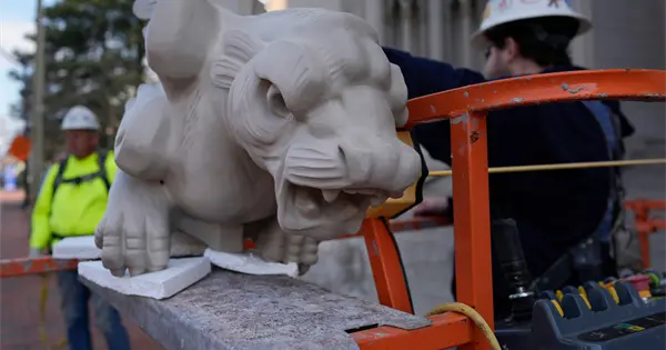 COVINGTON, Kentucky, EE.UU. (AP) — La última gárgola ha sido devuelta a su pedestal como parte de una restauración de una catedral de Kentucky cuya fachada está inspirada en la de Notre Dame, en París.
