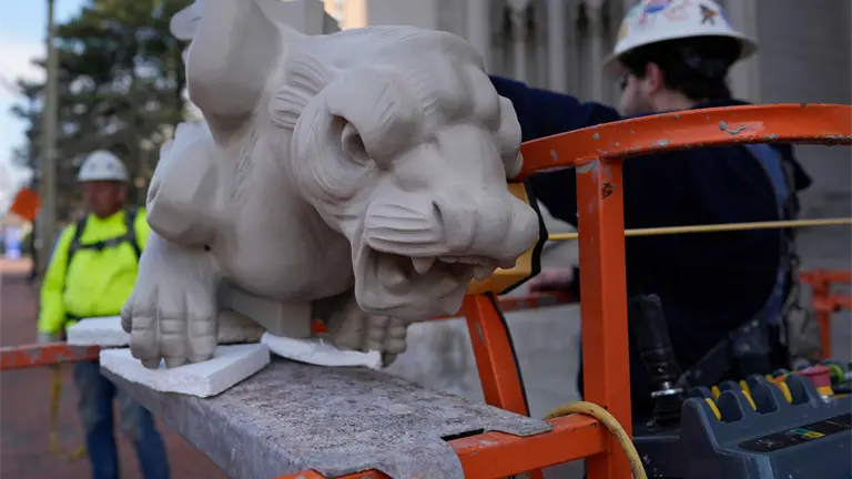 "Creo que es algo muy especial y muy único", expresó Maher, quien observó desde la acera cómo la última gárgola hecha de terracota era izada hasta la parte superior de la fachada.