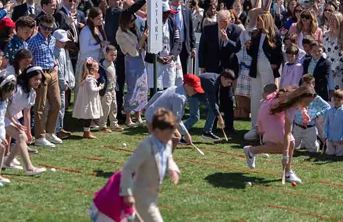 La tradición de celebrar una carrera en la que los niños hacen rodar huevos por el pasto con ayuda de una cuchara en lunes de Pascua se remonta a 1878, por una ocurrencia del entonces presidente Rutherford Hayes, quien decidió invitar a un grupo de infantes a jugar en los jardines de la residencia presidencial.