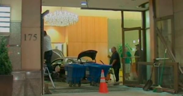 El coche, un Mercedes-Benz negro, se estrelló contra las puertas de cristal antes de acabar detenido en el interior. La policía no reveló ninguna información sobre el conductor.