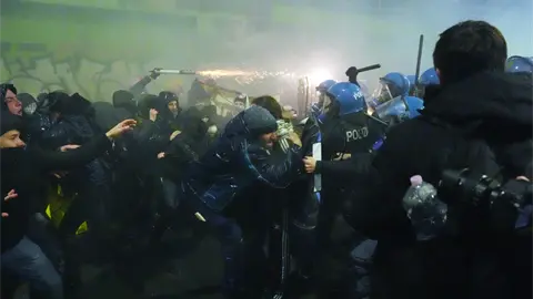 Se enfrentan policías y manifestantes contra Olímpicos en Milán