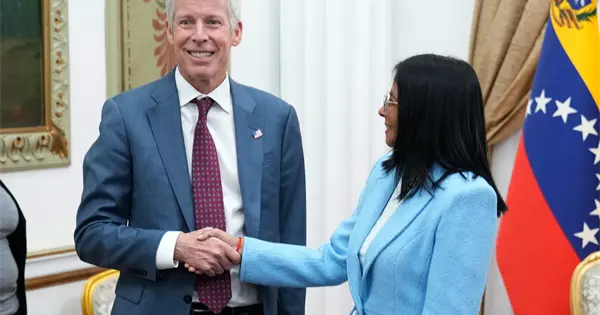 Wright se reunió con Rodríguez en el palacio presidencial de Miraflores, en Caracas. Se espera que se reúna también con funcionarios gubernamentales, ejecutivos petroleros, líderes empresariales y otras personas de los principales sectores del país durante una visita de tres días al país sudamericano.