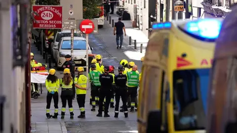 La fachada permaneció en pie y aparentemente detuvo que la mayoría de los escombros llegaran a la calle. Los bomberos y la policía estaban utilizando perros rastreadores y drones para ayudar en las tareas de búsqueda.