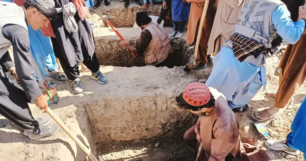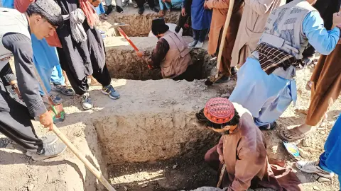 El sábado, varios miles de personas asistieron a los funerales en Paktika. Se sentaron al aire libre mientras altavoces transmitían sermones y condenas.