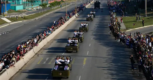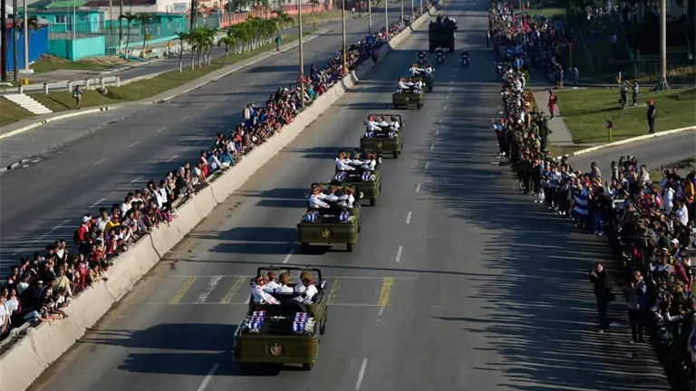Una multitud de personas rindió honor a los caídos con banderas al paso de la caravana que transportaba sus restos desde el aeropuerto hasta la sede del Ministerio de las Fuerzas Armadas –contiguo a la icónica Plaza de la Revolución— donde las pequeñas cajas fueron después instaladas y ante las cuales otros miles de personas desfilaron por horas y bajo la lluvia.