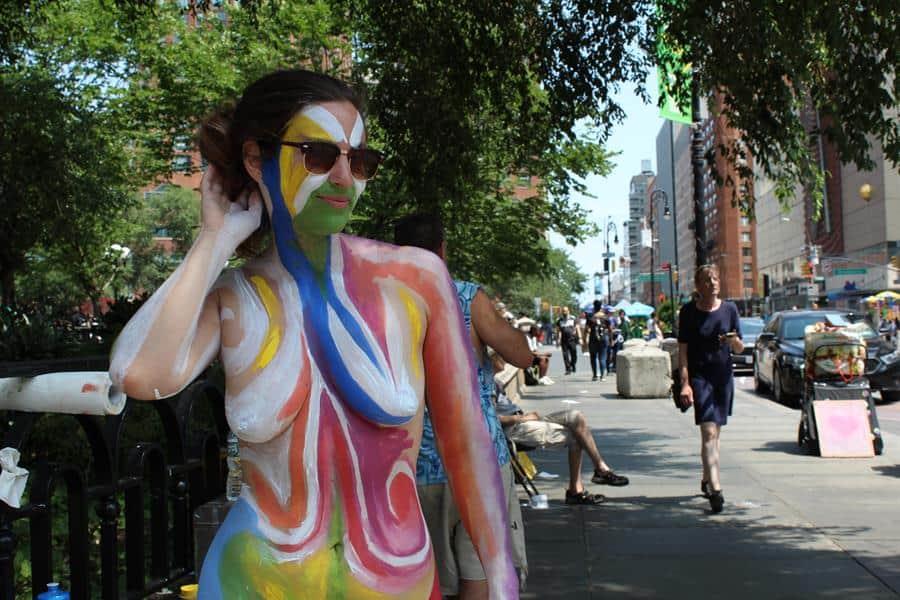 El próximo 24 de julio la organización Human Connections Arts celebrará en Nueva York su novena jornada de cuerpos desnudos pintados y hoy, el artista Andy Golub y la modelo Niki Davis-Fainbloom mostraron en la plaza de Union Square un colorido adelanto ante las miradas asombradas de las concurrida plaza.