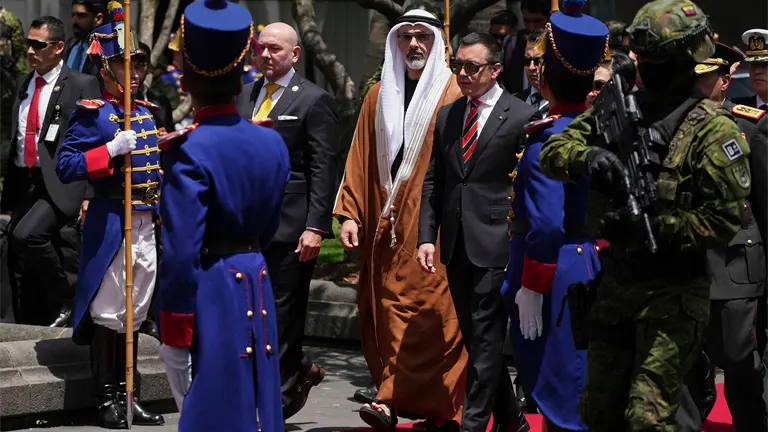 QUITO (AP) — Pese a las tensiones en Oriente Medio, el presidente ecuatoriano Daniel Noboa recibió el domingo en Quito al príncipe heredero de Abu Dabi, Jaled bin Mohamed bin Zayed Al Nahyan, en una visita para fortalecer los lazos bilaterales con Emiratos Árabes Unidos, informó la cancillería.