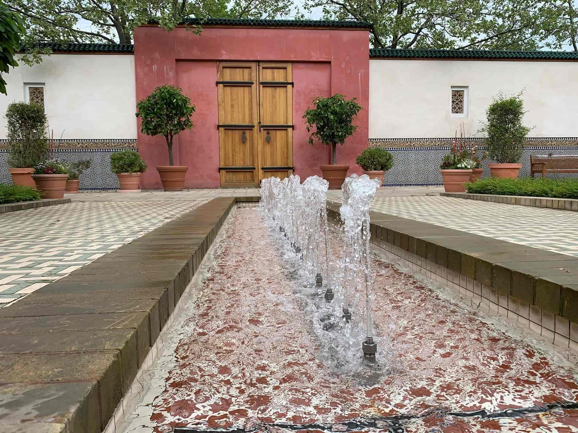 Dado que está prohibido representar animales o humanos en los jardines orientales, la decoración ornamentada solo incorpora patrones florales, caligráficos o geométricos. Fueron diseñados por artesanos marroquíes y se utilizaron un total de 1,3 millones de teselas.