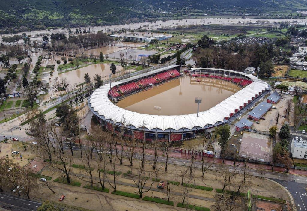 La cancha de Talca, de 105 metros de largo por 68 de ancho y con capacidad para 16.000 personas, tardará en volver a usarse porque todo el césped está bajo las aguas al igual que casi la totalidad de esa ciudad de más de 220.000 habitantes ubicada a 250 kilómetros al sur de la capital chilena.