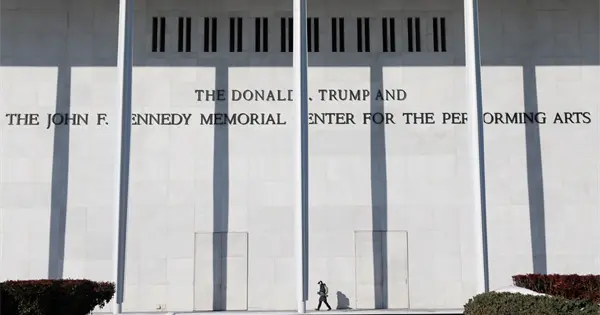 La junta también anunció que rebautizó la instalación como el Trump Kennedy Center, un cambio que, según académicos y legisladores, debe ser iniciado por el Congreso, y añadió físicamente el nombre del presidente a la fachada del edificio.