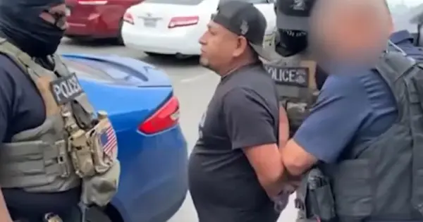 Las imágenes, tomadas en un estacionamiento, muestran a los agentes con equipo táctico, mientras se escucha a un oficial preguntar sobre la identidad del detenido y su país de origen, confirmando que la persona arrestada es de México.