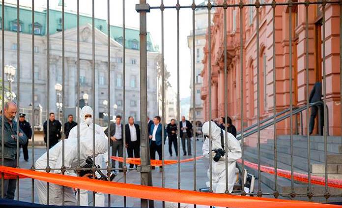 Según agregaron desde el Ministerio de Justicia y Seguridad de la Ciudad de Buenos Aires, cuando el hombre se acercó a la reja de la Casa Rosada -que cerca el edificio- y pidió ver al mandatario, personal de la Policía Federal (PFA) le indicó que "no eran los medios ni la forma, lo que generó el descontento del hombre, quien de manera imprevista arrojó una caja plástica de pequeña dimensión dentro del predio".