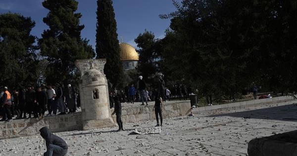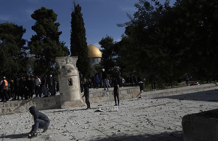 Según la policía israelí, cientos de personas -la mayoría enmascarados y portando banderas de Hamás- se amotinaron dentro de las mezquitas desde el rezo de las 4.00 y arrojaron piedras y fuegos artificiales a los oficiales.