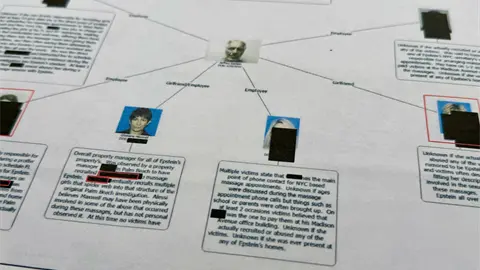 La fotografía de una niña que fue contratada para dar masajes sexualizados a Epstein en Florida apareció en una de las gráficas de presuntas víctimas. Informes policiales con los nombres de varias de sus víctimas --incluidas algunas que nunca se han presentado públicamente-- fueron publicados sin ningún tipo de censura.