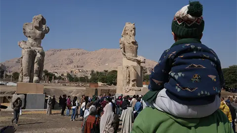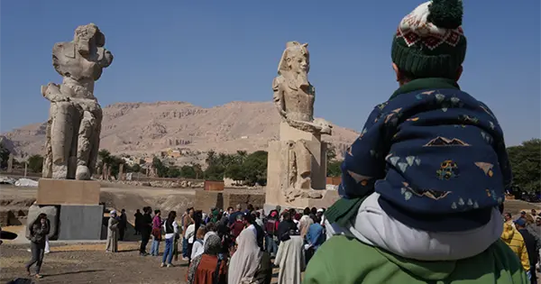 Luxor, Egipto.- Egipto reveló el domingo la renovación de dos colosales estatuas de un destacado faraón en la ciudad sureña de Luxor, el último de los eventos arqueológicos del gobierno que buscan atraer más turistas al país.