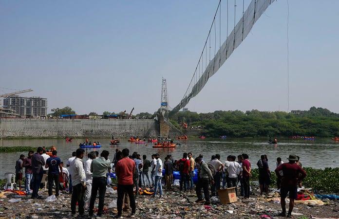 30 de octubre de 2022.- Al menos 132 personas murieron por el colapso de un puente colgante en el oeste del país.