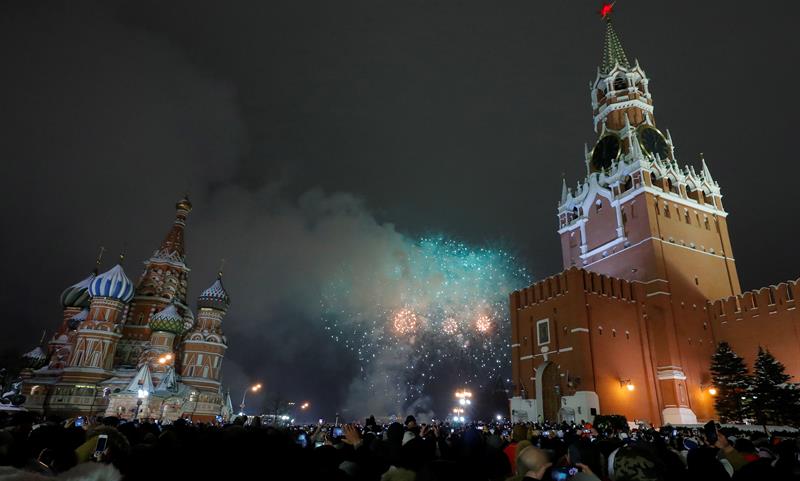 En Europa, las celebraciones en Rusia quedaron marcadas por fuegos artificiales sobre el Palacio del Kremlin y la Plaza roja de Moscú, mientras que los juegos pirotécnicos también iluminaron ciudades en Kazajastán, Rumania, Turquía y Grecia, donde el espectáculo de luces enmarcó el Partenon en Atenas.