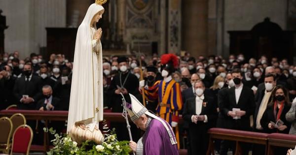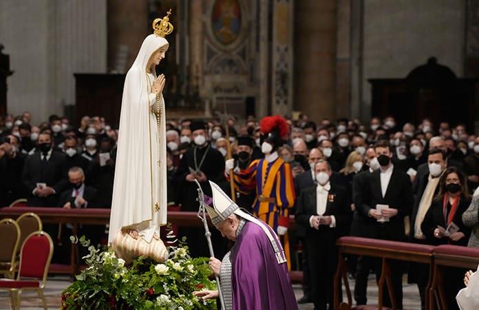 Francisco deseó “llevar al Corazón inmaculado de María todo lo que estamos viviendo; renovar a ella la consagración de la Iglesia y de la humanidad entera y consagrarle, de modo particular, el pueblo ucraniano y el pueblo ruso, que con afecto filial la veneran como Madre”.