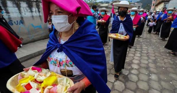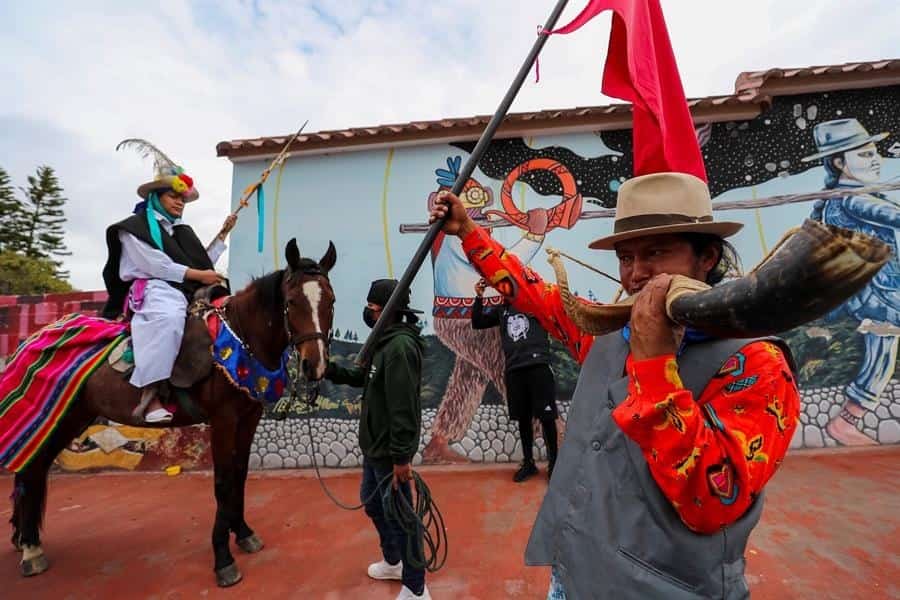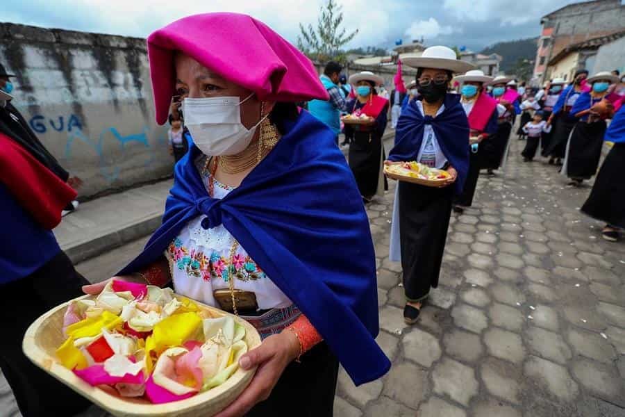 Para ello llegó hasta esta comunidad, a 54 kilómetros al norte de Quito, la ministra de Cultura y Patrimonio, María Elena Machuca, quien fue designada como la "achik mama" (madrina) del Pawkar Raymi 2022.