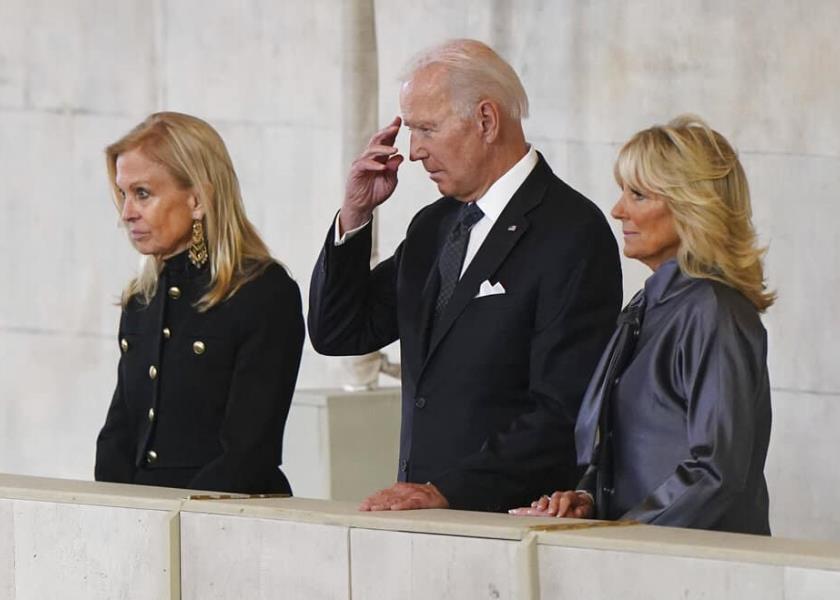 Poco después, el presidente de Estados Unidos, acompañado por la primera dama, mantuvo asimismo unos minutos de silencio frente a los restos mortales de la soberana británica. Biden ensalzó la "noción de servicio" que representaba Isabel II: "Todos lo debemos algo", recalcó.