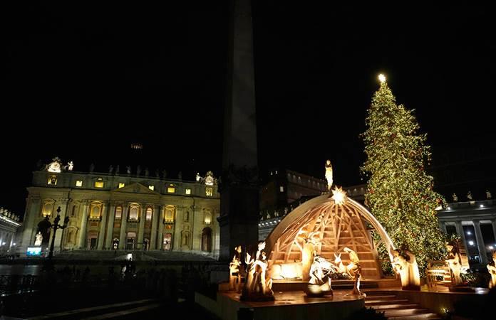 CIUDAD DEL VATICANO (EFE).- La plaza de san Pedro del Vaticano se ha teñido desde hoy de ambiente navideño con la inauguración de su Portal de Belén y con el encendido de su árbol de Navidad, así como el del Nacimiento que decorará el interior de la Santa Sede y que este año han elaborado artesanos de Guatemala.