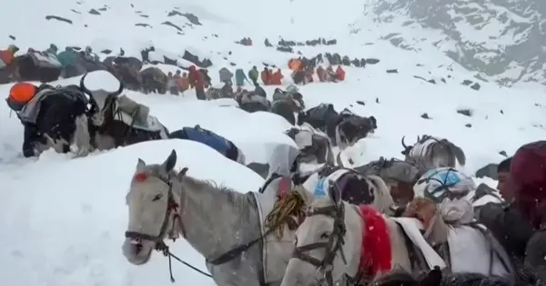 Algunos excursionistas, según se informa, tenían hipotermia, y la agencia oficial de noticias Xinhua dijo que alrededor de una docena de ellos fueron escoltados a un punto de encuentro por equipos con alimentos, medicinas, calefacción y suministros de oxígeno.