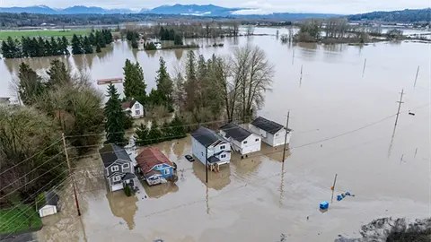 En un valle que conduce a las estribaciones del monte Rainier al sureste de Seattle, los agentes de la policía del condado Pierce rescataron a personas en una zona de casas rodantes en Orting, lo que incluyó ayudar a un hombre con un gorro de Santa a vadear una zona con el agua hasta la cintura. Parte del poblado estaba bajo órdenes de evacuación debido a preocupaciones sobre los niveles extremadamente altos del río Puyallup y los diques río arriba.