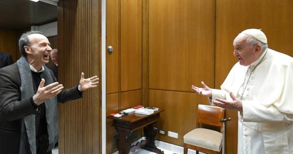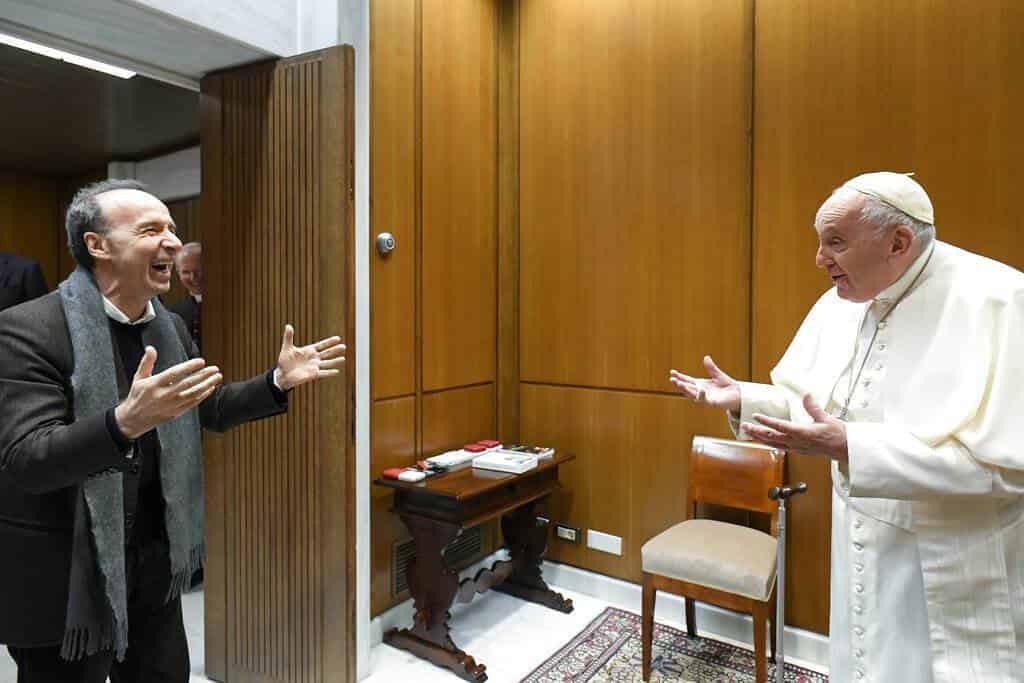 Encuentro cargado de alegría y abrazos entre el papa Francisco y Roberto Benigni