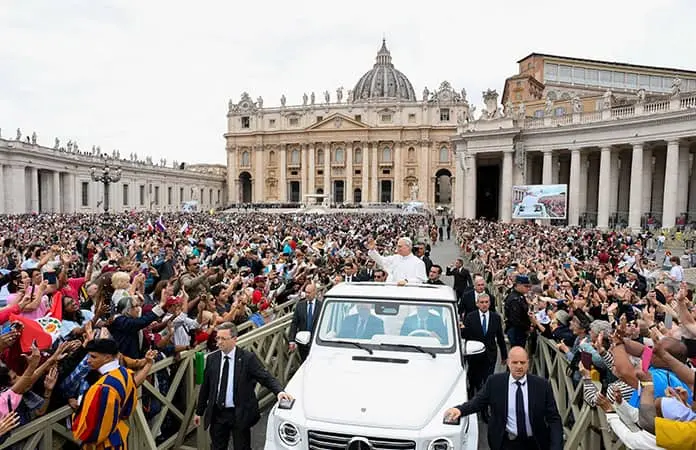 El papa fue recibido por los fieles con vítores y aplausos a su llegada a la plaza vaticana, que León XIV recorrió en un coche descubierto antes del inicio de su primera audiencia general, que había levantado una gran expectación.