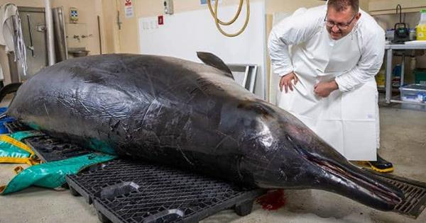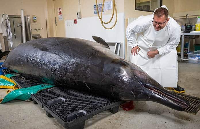 Van Helden ha estudiado las ballenas zífilo, de hocico pronunciado, durante 35 años, pero el lunes fue la primera vez que participó en una disección de la variedad de diente de sable. De hecho, el estudio cuidadoso de la criatura, que apareció muerta en una playa de Nueva Zelanda en julio, es el primero que se realiza.