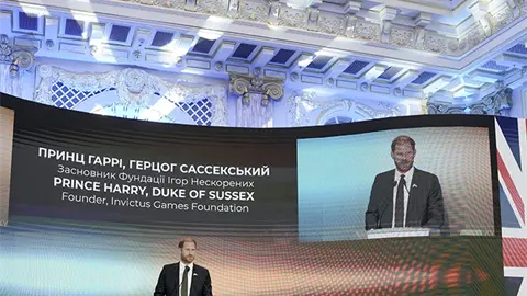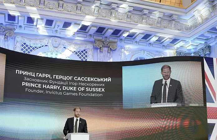 La lucha de Ucrania contra el ejército más grande de Rusia recibió elogios del príncipe Enrique, quien llegó a Kiev el jueves para su tercera visita en un año.
