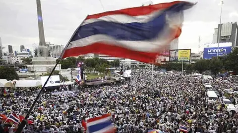 Reunidos en el Monumento a la Victoria de Bangkok a pesar de las altas temperaturas, muchos entonaron canciones patrióticas y escucharon discursos que denunciaban a Paetongtarn ya su padre, Thaksin Shinawatra, un ex primer ministro, y expresaron su respaldo al ejército del país, que siempre ha mantenido un poder sustancial en el país del sudeste asiático.
