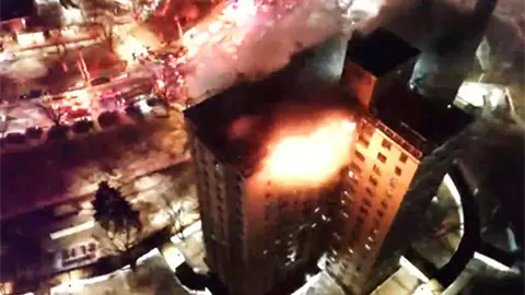 El jefe del Departamento, John Esposito, indicó que los bomberos estaban investigando informes de un olor a gas en los pisos 15 y 16 cuando ocurrió la explosión. Señaló que hubo daños estructurales importantes en alrededor de una docena de apartamentos y fuegos en 10 apartamentos en los pisos 16 y 17.
