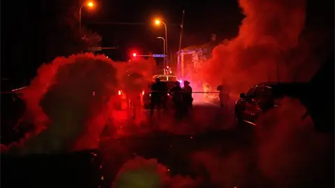 La situación se volvió más tensa, dijo. Podía escuchar granadas de aturdimiento en la calle y había humo en el aire. Cuando los manifestantes llenaron la calle a su alrededor, la familia comenzó a alejarse, pero se encontraron con agentes federales, quienes les ordenaron que se fueran, señaló.