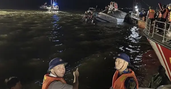Bahía de Ha Long, Vietnam.- Un bote turístico se volcó durante una repentina tormenta eléctrica en Vietnam durante una excursión, causando la muerte de 34 personas, informaron medios estatales. Ocho personas siguen desaparecidas.