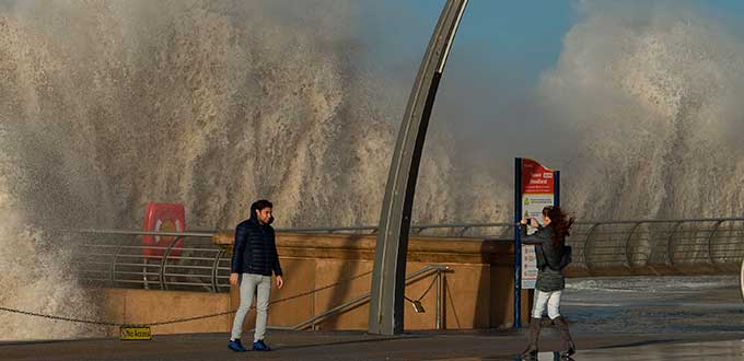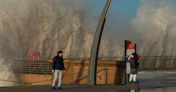 La marea extremadamente alta causó el colapso parcial de una barrera rompeolas en el puerto de Cornualles, con lo que el agua de mar entró a las calles de la ciudad.
