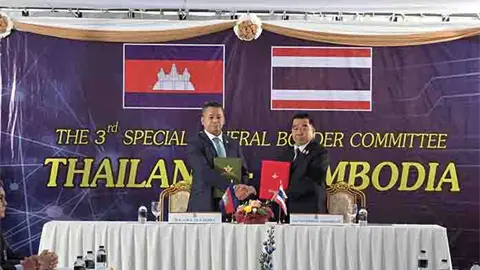 Los ministros de Defensa de ambos países, Tea Seiha de Camboya y Nattaphon Narkphanit de Tailandia, firmaron el acuerdo en un puesto de control fronterizo después de que funcionarios de menor nivel sostuvieron tres días de reuniones como parte del ya establecido Comité General de Fronteras.