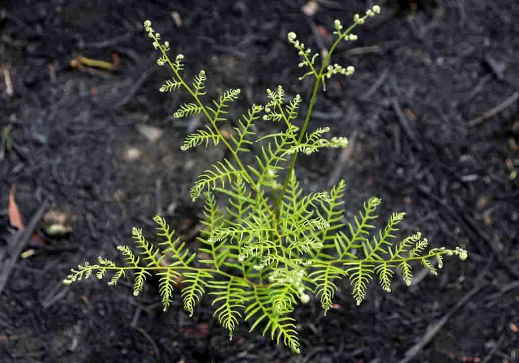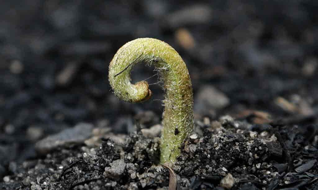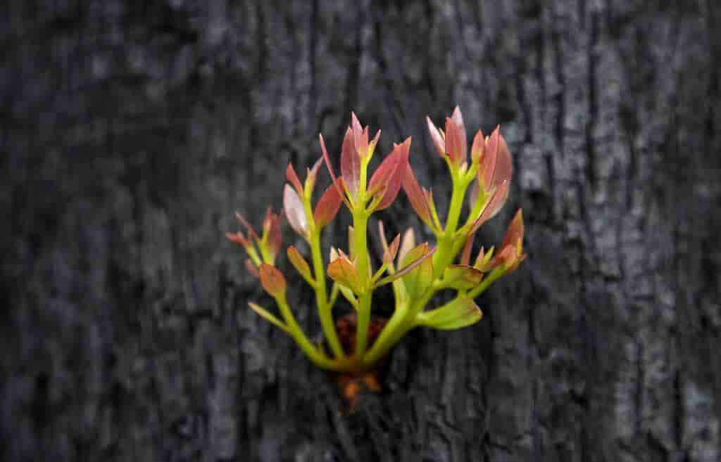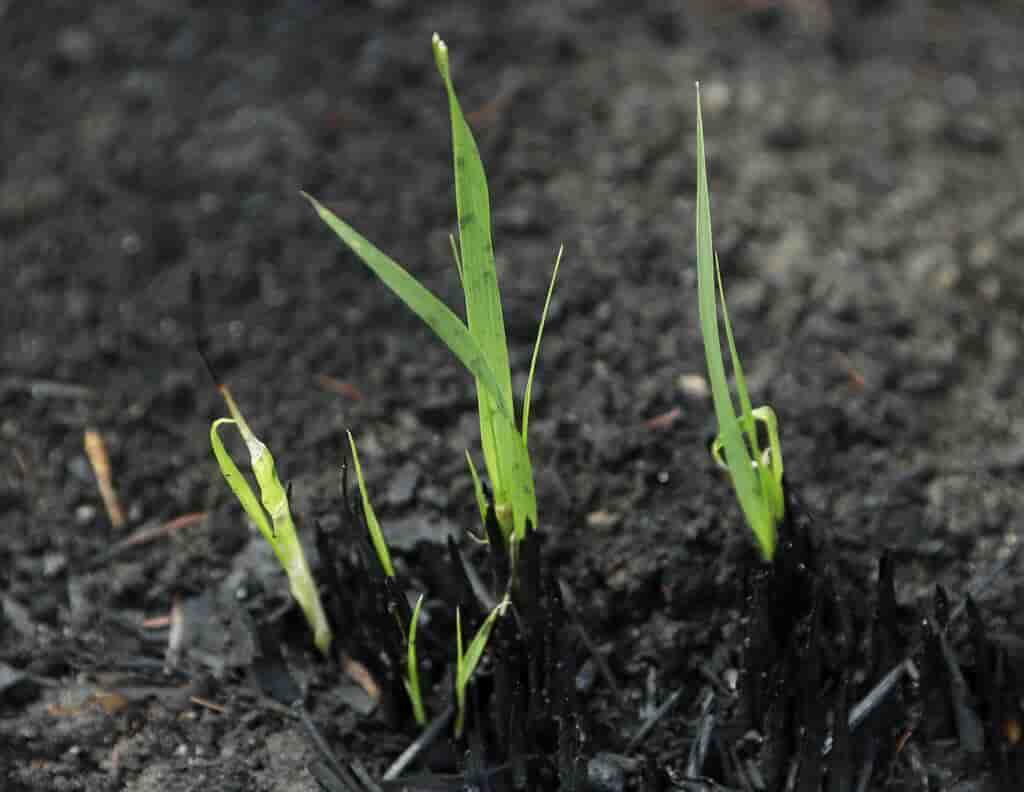 Los primeros brotes verdes ya han surgido en algunos bosques ennegrecidos después de la lluvia.