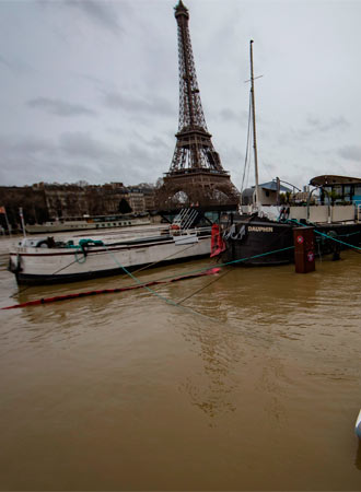 Tras dos semanas de lluvias, la acumulación de agua es notable en las inmediaciones del Sena, cuyo nivel aumentó un metro el pasado lunes y ha ido incrementándose en un promedio similar al de junio de 2016, cuando una inundación aumentó cuatro metros en cuatro días.