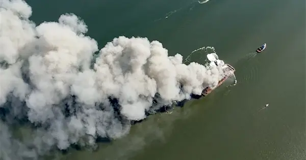 En un comunicado, el Departamento de Recursos Naturales y Control Ambiental de Delaware dijo que la barcaza estaba siendo trasladada a aguas menos profundas y que estaba en el lugar realizando monitoreo del aire.