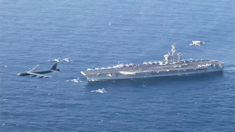 En comentarios a reporteros a bordo del Air Force One, Trump indicó el jueves que Estados Unidos estaba acercando sus buques de guerra a Irán "por si acaso" quisiera tomar medidas.