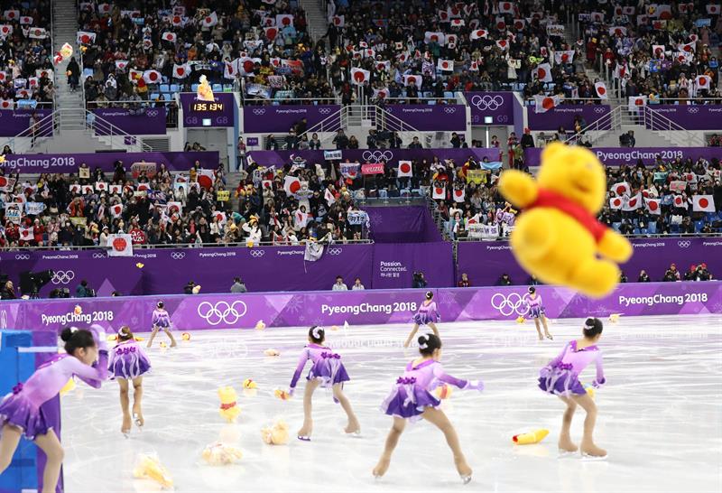 Cada vez que el japonés Yuzuru Hanyu, que ganó este sábado el oro en patinaje artístico en los Juegos de PyeongChang, termina un ejercicio, una lluvia de muñecos de Winnie The Pooh cae sobre la pista para ovacionar al que se ha convertido en un ídolo absoluto en su país.