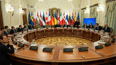 En la cita de este sábado participaron representantes de Alemania, Reino Unido, Francia, Italia, España, Letonia, Lituania, Estonia, Polonia, Finlandia, Países Bajos, Suecia, Noruega y Dinamarca, además de Canadá, la OTAN y la Unión Europea .